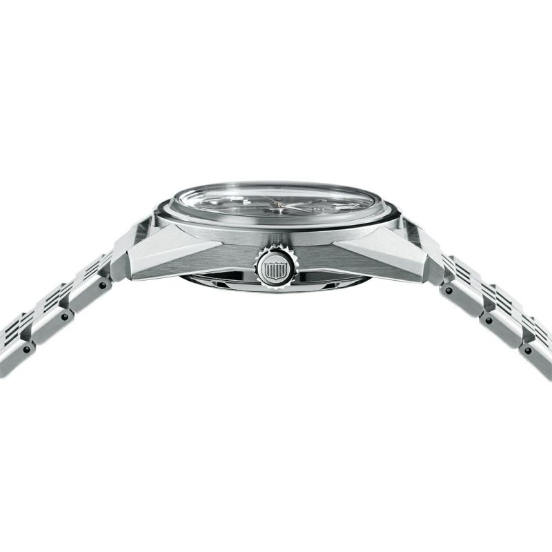 2022年のブランド復活から続く“KSK”シリーズに、シンプルな3針ダイヤルのモデルが登場。ケースサイズは、キングセイコーの現行モデルで最小となる36.1mmです。鏡面とヘアラインに磨き分けることで、コンパクトでありながら、“KSK”シリーズの特徴である稜線の際立つシャープなケースに仕上げました。