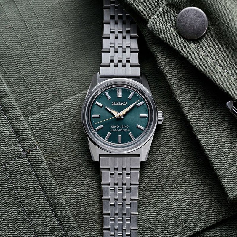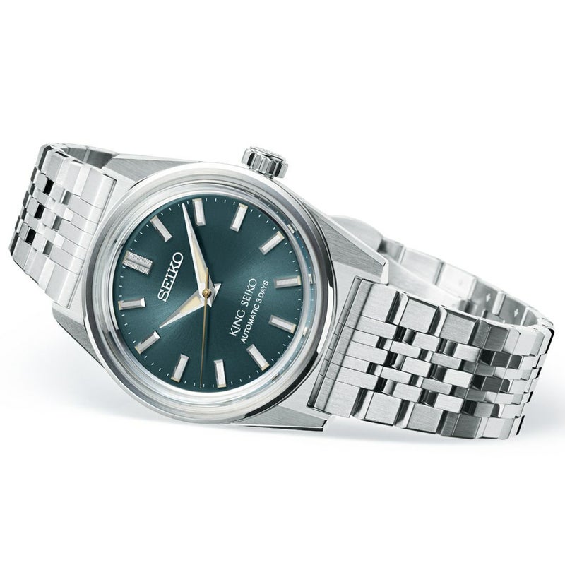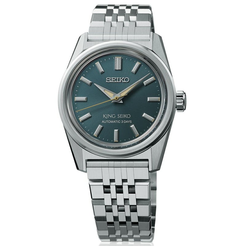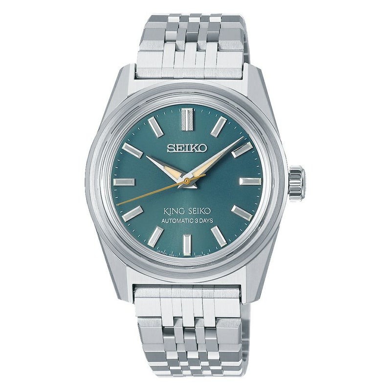 2022年のブランド復活から続く“KSK”シリーズに、シンプルな3針ダイヤルのモデルが登場。ケースサイズは、キングセイコーの現行モデルで最小となる36.1mmです。鏡面とヘアラインに磨き分けることで、コンパクトでありながら、“KSK”シリーズの特徴である稜線の際立つシャープなケースに仕上げました。