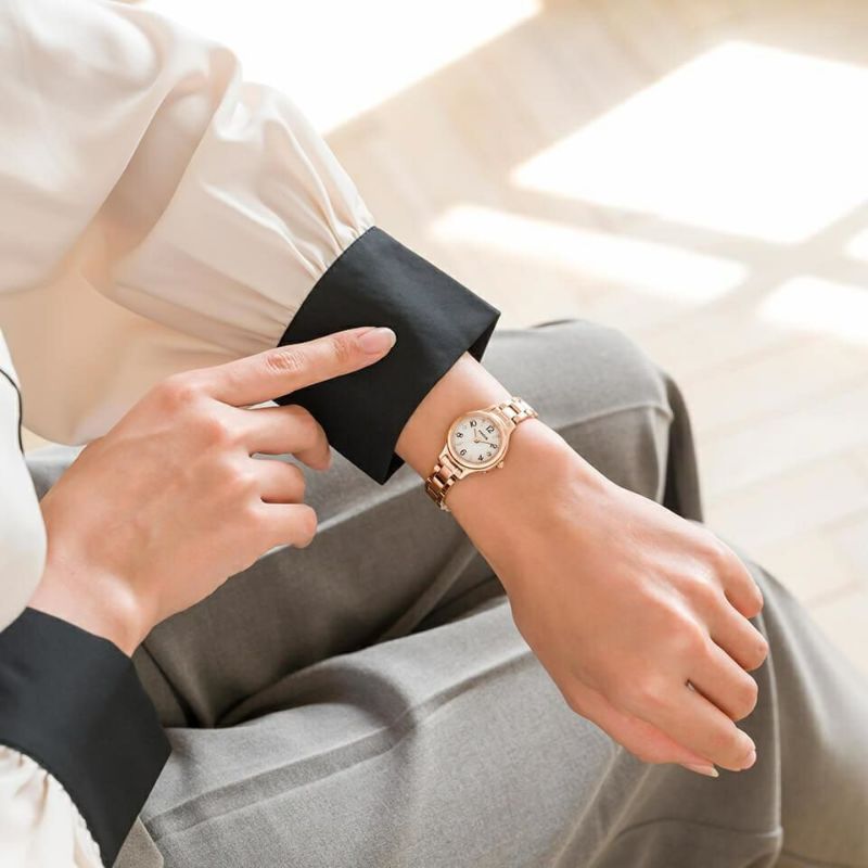 ベーシックで使いやすいホワイト文字板とピンクゴールドの