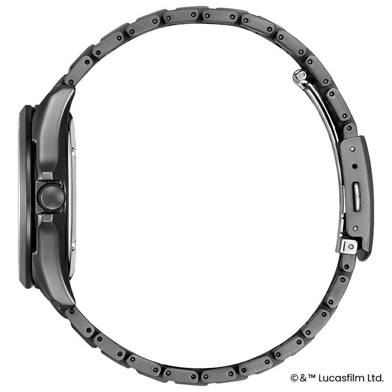 「ダース・ベイダー」を彷彿させるデザインをさりげなくあしらい、日常のシーンでも使いやすく仕上げた一本。ケースとバンドは「ダース・ベイダー」にインスピレーションを得たオールブラックで、文字板の赤い差し色は「ライトセーバー」をイメージした配色です。