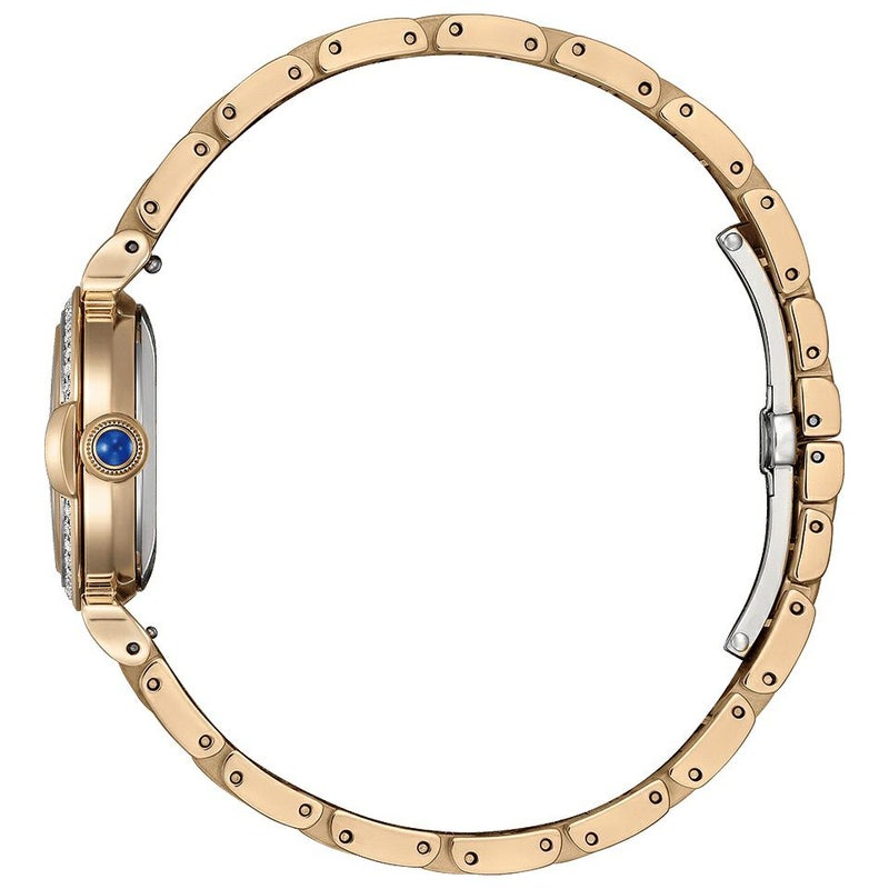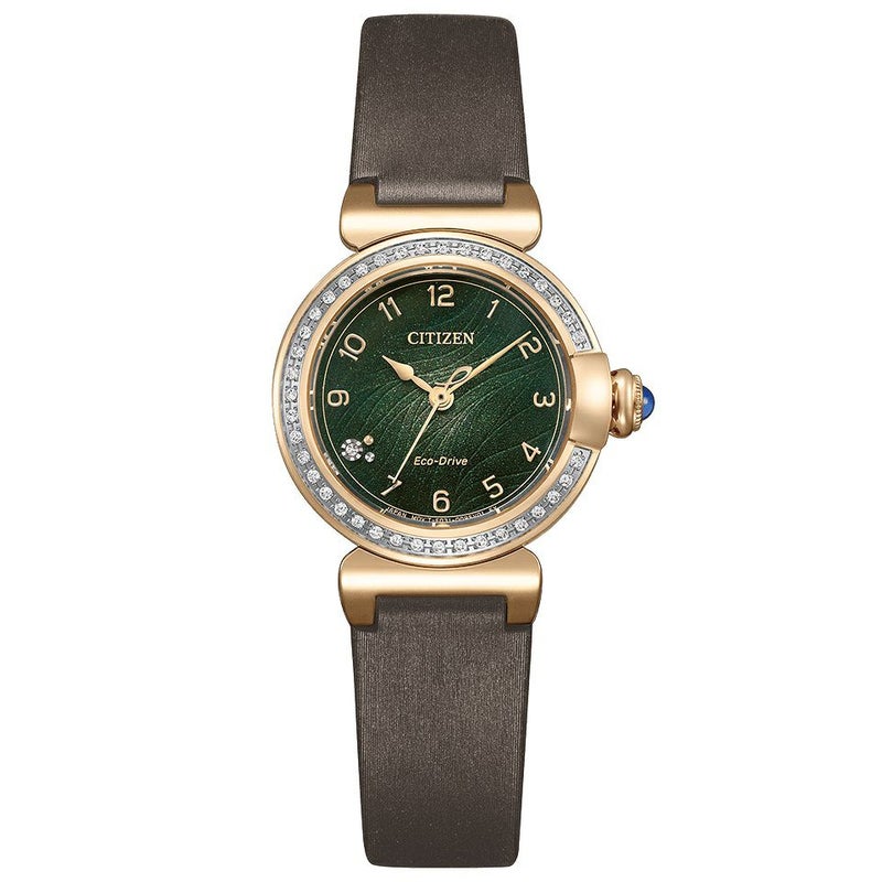 スズランがモチーフで人気のあるROUND Collectionからミニサイズモデルが登場。ベゼルに直径1.1mmの天然ダイヤモンドを39個敷き詰めた存在感のあるケースが、手元をひときわ華やかに彩るジュエリーライクなデザインです。インデックスには、スズランのピュアな印象を表現したアラビア数字のフォントを採用。8時の位置に、スズランのしなやかな葉をつたう雫の輝きをあしらい、フェミニンな優しさと自然の躍動感を表現しました。