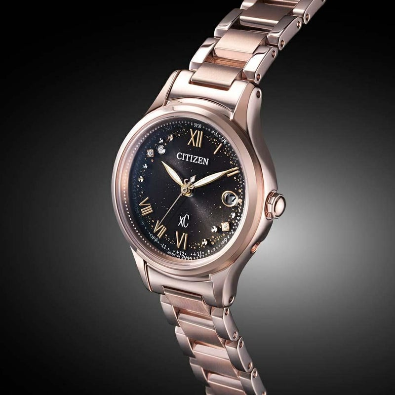 ブラックの文字板をベースに、ゴールドのアクセントカラーを取り入れた華やかな印象のデザインで、新年や新しい門出を祝うにふさわしい配色。