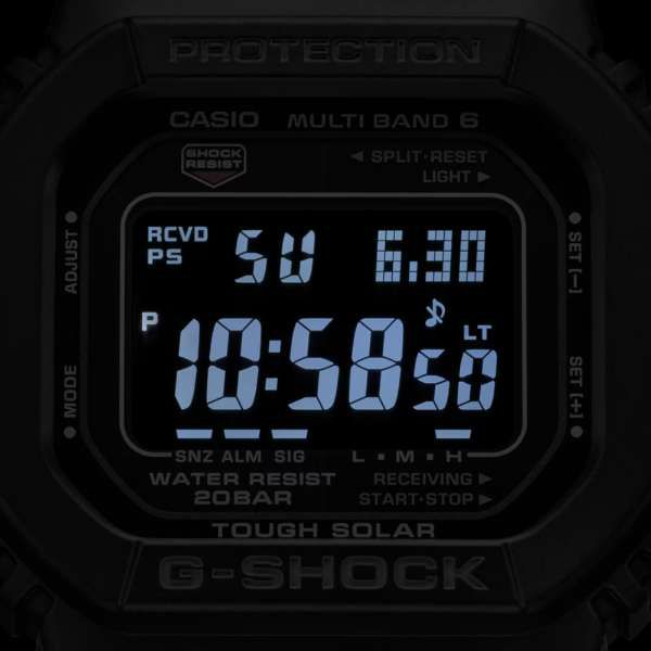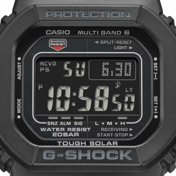 1983年に誕生したDW-5000Cのデザインを継承し、タフソーラー、マルチバンド6を搭載し進化を果たした人気のGW-M5610シリーズ。ファーストモデルDW-5000のケース形状、文字板デザインを受け継いだクラシカルなデザインはそのままに、ブラックのケース・バンドに反転液晶を組み合わせました。色埋め部分すべてにダークグレーを採用し、全身モノトーンでクールに仕上げています。タフネスをコンセプトに進化を続けるG-SHOCKの中で、ファーストモデルのDNAを受け継ぎ、更に進化したモデルです。