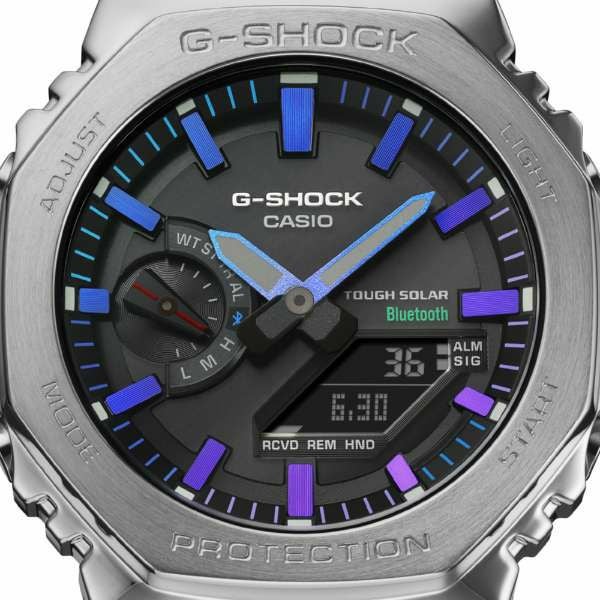 1983年の誕生以来タフネスを追求し、40周年を迎えたG-SHOCKのフルメタルシリーズから、レインボーカラーをアクセントにしたモデルです。