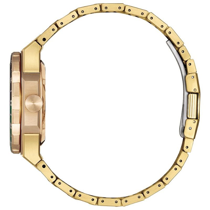「世界を舞台にした挑戦」をテーマに、ケースとバンドにはゴールドのツートンカラーを採用。イエローゴールドは光輝く都市をウォームゴールドは輝かしい未来をイメージし、ベゼルに配色されたグリーンとブラックが、その輝きをより一層際立たせます。ムーブメントにはGMT機能を備える「Cal.9054」を搭載。GMT機能は、分針・秒針・24時間針を動かさず、時針だけを自由に動かしメインの時刻を1時間単位で変えることができます。また、両回転ベゼルを使用することで最大3つの時刻を確認できます。裏ぶたは、ムーブメントの鼓動を感じられるシースルーバック仕様です。
