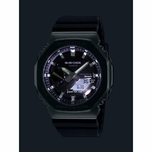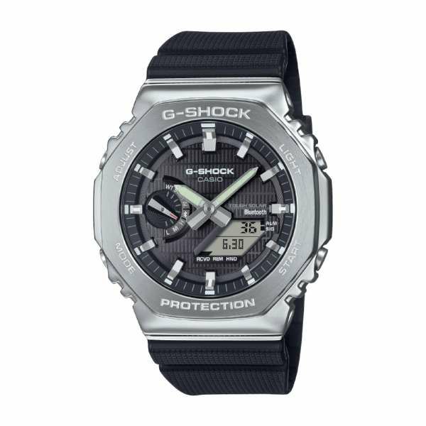 1983年の発売以来、飽くなき強さを求めて進化を続けるタフネスウオッチG-SHOCKから、2100シリーズの特徴であるスリムなサイズ感をキープしながら、スマートフォンリンクとタフソーラーを搭載したモデルです。 GM-2100の八角形フォルムはそのままに、スマートフォンリンクとタフソーラーを搭載したメタルベゼルのモデルです。バンドにはバイオマスブラスチックを採用し、環境にも配慮しました。