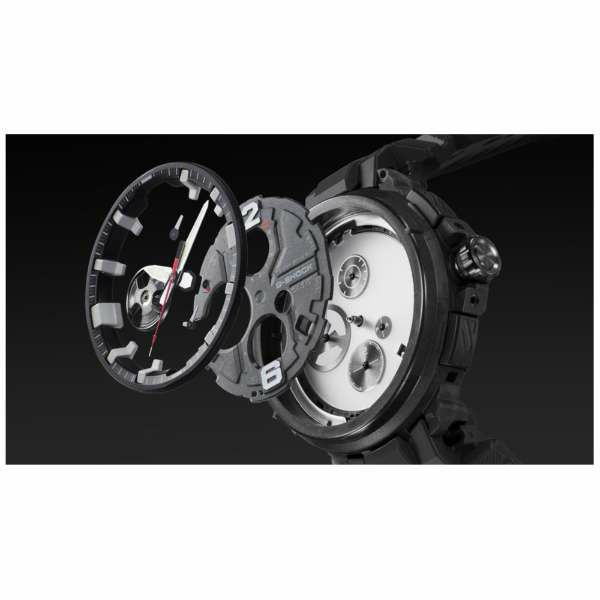 耐衝撃構造の「カーボンコアガード構造」を採用。カーボン繊維強化樹脂を用いたケースと次世代航空機から着想を得たシームレスなベゼルを組み合わせて力強いフォルムを実現。