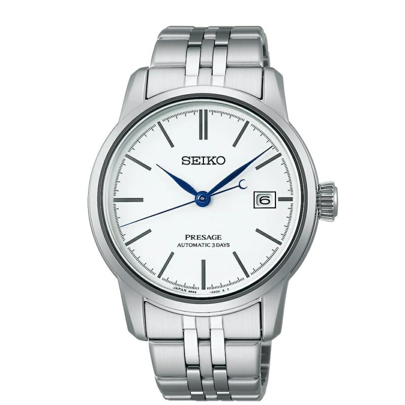 温もりある白色とみずみずしい艶を持つ琺瑯ダイヤルは、青い針とグレーのインデックスが彩りを加え、その美しさを更に引き立てています。気温や湿度に合わせて釉薬の各成分比率を調整するなど、高い技量が求められる琺瑯ダイヤルは、今なお琺瑯職人横澤 満 氏の手作業で丁寧に焼き上げられています。