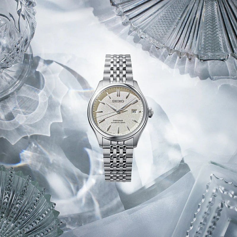 デュアルカーブガラスを採用し、柔らかな曲面で構成されたケースデザインは、中心に向かって緩やかに丸みを帯びたダイヤルと呼応し、つい触れたくなるような柔和な雰囲気を醸し出します。