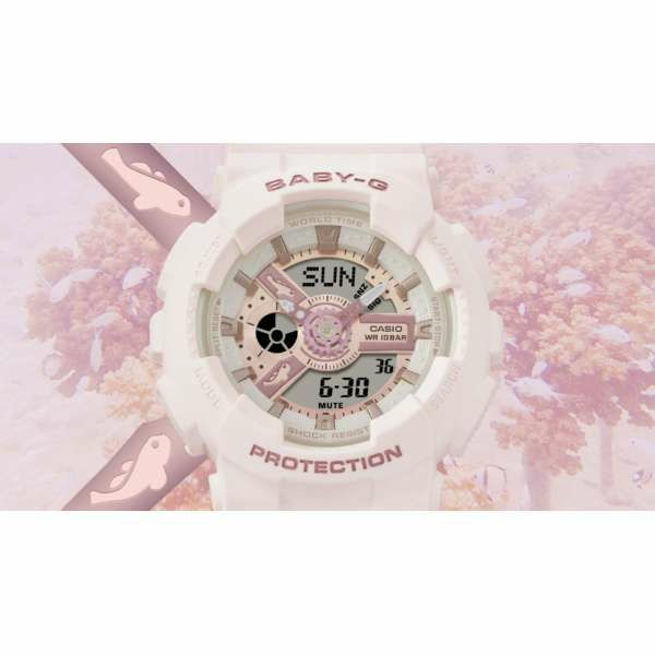 珊瑚礁の保全活動を行う特定非営利団体「アクアプラネット」とのコラボレーションモデルです。2024年のモデルは、アクアプラネットが管理するカシオサンゴ畑に生息する「フタイロサンゴハゼ」がテーマ。ユニークな形状の時分針をサンゴに見立て、中央部分にコーラルピンクを配色。フェイスに「フタイロサンゴハゼ」のシルエットをあしらい、サンゴに寄り添う可愛らしい姿を表現しました。