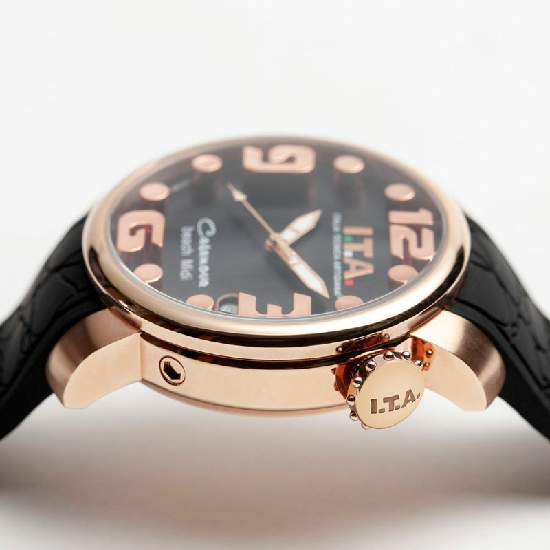 ラバー製(クロコダイル型押し、ステッチ入り)
